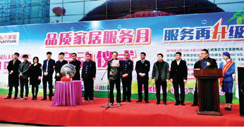 在“3·15”消費者權益日,忻州東方家園建材家具中心推出了“品質家居服務月”活動。期間,東方家園與山西愛潔達貿易公司、忻州市惠民物業管理公司強強合作,為顧客提供免費上門服務。圖為“品質家居服務月”啟動儀式。(李志強 攝)