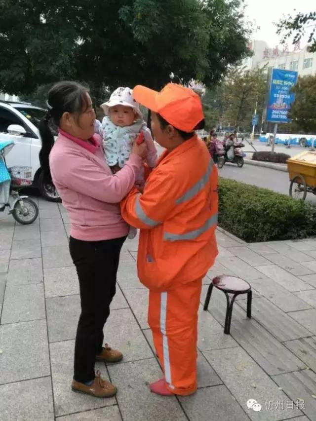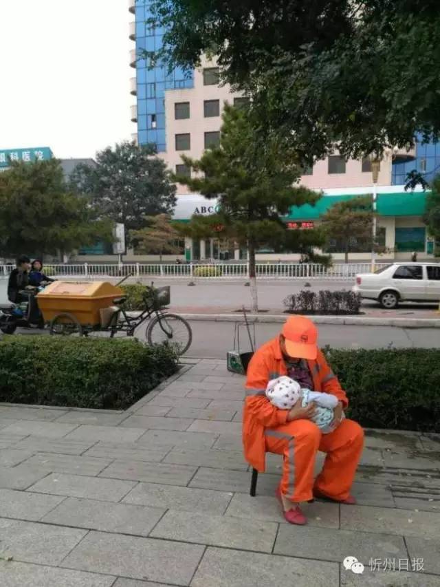 (五)創(chuàng)衛(wèi)工作如火如荼,環(huán)衛(wèi)女工扔下嗷嗷待哺的女兒投身在創(chuàng)衛(wèi)工作。環(huán)衛(wèi)女工正在清掃路面垃圾,母親帶孩子來(lái)找她喂奶,孩子吃飽后,又把孩子交給母親,邊鏟除口香糖,邊望著遠(yuǎn)去的親人,滿(mǎn)臉的依依不舍。(董蘊(yùn)宜 攝)