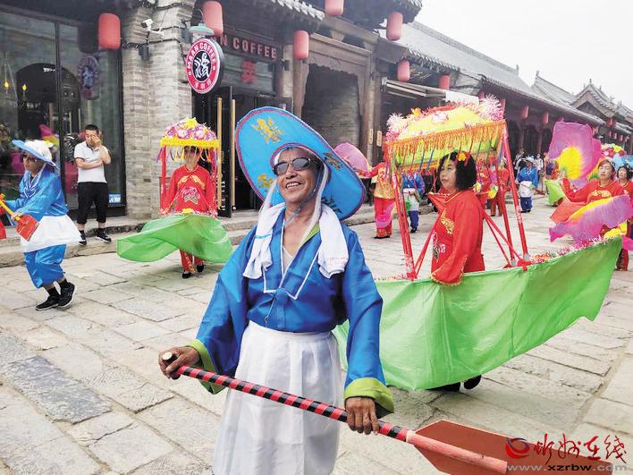 漫步在忻州古城街頭,一個個具有濃厚地方文化特色的表演節目,如五臺秧歌、巾幗鼓舞、五臺山佛樂、旱船表演等輪番上演,讓游忻州古城的市民和外地游客深深領略到了五臺的風土人情,近距離感受到了五臺縣非物質文化遺產的魅力和特色文化旅游資源的風采。