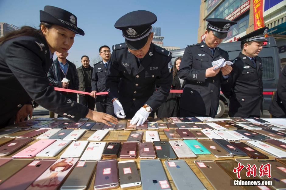 3月2日,山西太原警方發還民眾被盜手機。近日,太原市公安局偵破一個手機扒竊犯罪團伙,破獲案件200余起,追繳手機180余部。張云 攝