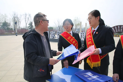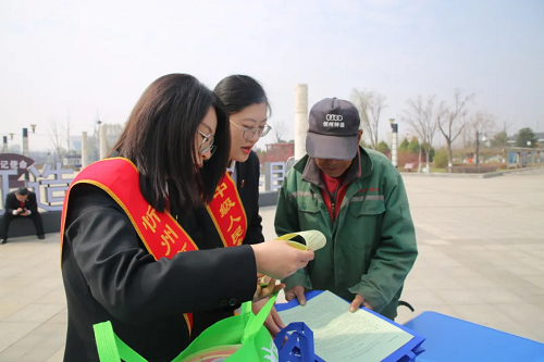 春風正暖,景區內人來人往,看到有普法宣傳活動,前來咨詢的群眾絡繹不絕。干警們通過發放宣傳冊、法律咨詢等方式,向過往游客、景區職工重點宣講《黃河保護法》的具體內容、重要意義,以及保護黃河的具體舉措,積極引導群眾愛護母親河、保護母親河。