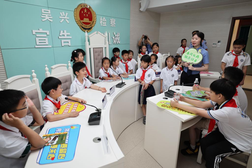 2024年7月3日,湖州市吳興區人民檢察院檢察官帶領小學生參觀未成年人檢察辦案區。新華社記者 黃宗治 攝