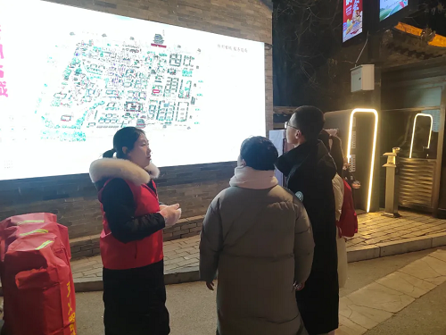 在涌動的人流中,一抹“志愿紅”格外醒目。在古城的各個區域,法院干警身著統一的服裝,熱情地為游客拍照、打卡、掃碼,宣傳介紹古城的旅游景點,還為游客提供路線指引、問題解答、失物協尋等幫助,古城內隨處可見他們忙碌的身影。