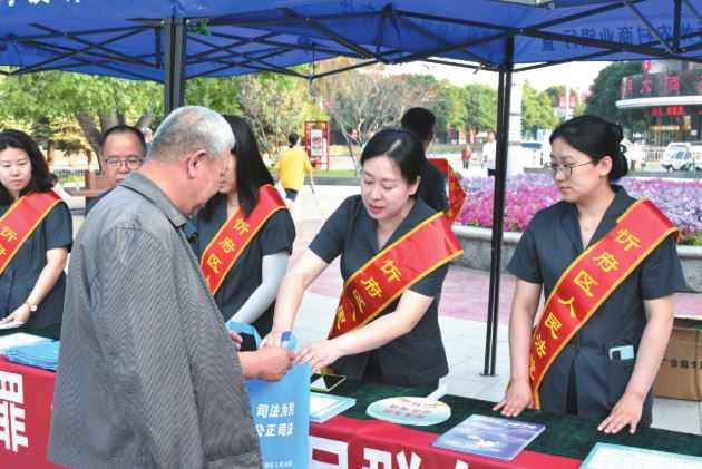 劉佳(右二)正在向過往群眾發放宣傳手冊