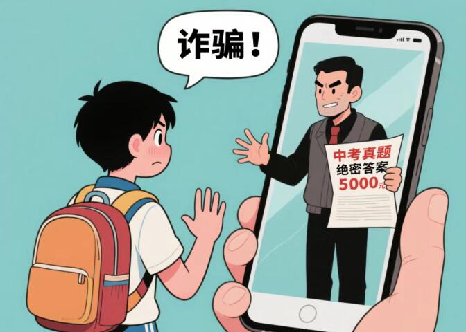 騙子會在網絡上發布 "中考真題"" 絕密答案 " 等虛假信息,聲稱可以幫助考生提高成績。