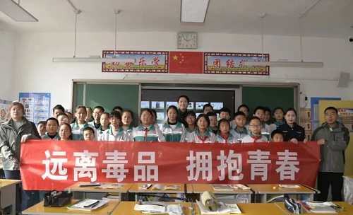活動尾聲,在民警的帶領(lǐng)下,全體同學(xué)高舉右拳,莊嚴宣誓,“珍愛生命,遠離毒品,防毒拒毒,從我做起”鏗鏘有力的誓言回蕩在校園,既展現(xiàn)了同學(xué)們抵制毒品的堅定決心,也讓“晉善警美”的法治理念深深扎根于青少年心中。