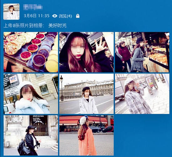 “最好找粉絲在10萬以下的網紅。”在微博上,魏強嫻熟地搜到一個名為“Panny”的模特,點擊其關注的好友,找到類似幾名網紅,讓記者下載她們的照片,用修圖軟件清除圖片上的水印,再上傳到QQ空間。魏強在QQ上假扮的“白富美”網名叫“Eiffel”,他還煞費苦心地更新“Eiffel”的QQ空間。