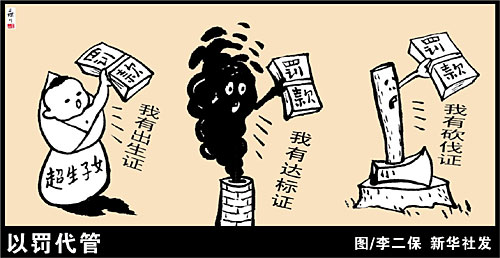長期以來,一些部門熱衷以罰代管,甚至給罰款定指標(biāo),導(dǎo)致監(jiān)管出現(xiàn)不同程度的混亂。比如對(duì)一些該給予整改關(guān)停的違法經(jīng)營活動(dòng),以罰了事,這不僅使得有關(guān)危害得不到遏制,還讓相關(guān)市場主體產(chǎn)生“罰了就沒事了”的錯(cuò)覺。在以罰為主的思維下,一些企業(yè)基于違法成本遠(yuǎn)低于非法暴利的算盤寧肯“長期受罰”,而少數(shù)執(zhí)法部門則動(dòng)起了“養(yǎng)魚執(zhí)法”的心思。