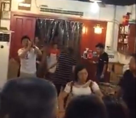 圖為便衣民警在向餐館內群眾道歉(左一)。