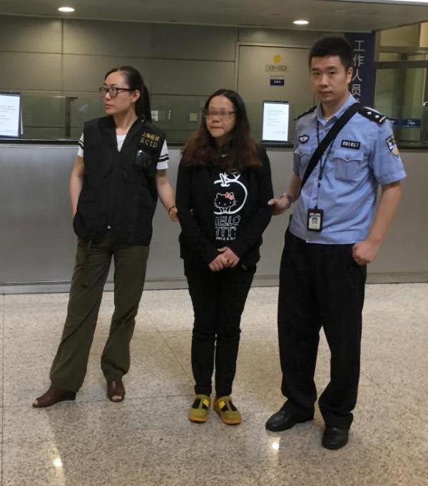 9月21日,上海浦東機場,犯罪嫌疑人劉某被上海警方從馬來西亞押送回滬。警方供圖
