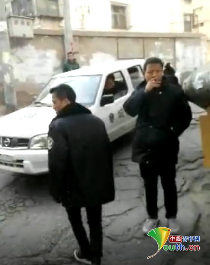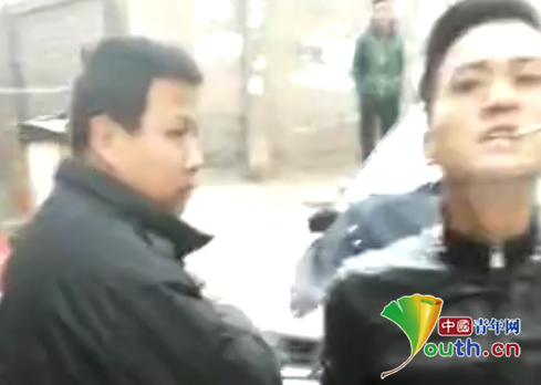 其中一名身穿黑色制服的男子,脫下外套、嘴叼香煙上前推打視頻拍攝者。 昨日,來自蘭州的熱心網友羅先生向中國青年網爆料,稱“蘭州市有城管辱罵毆打一位持手機拍攝者,臟話非常難聽”,并發來了一段視頻。該視頻中幾位穿黑色制服的人員與一名視頻拍攝者發生沖突,并兩次將視頻拍攝者的手機打落在地。 據爆料稱,該事件發生在蘭州市城關區萬達附近的一個巷道內,由于巷道較窄,雙方車輛難以通行,由此引發沖突。不過,該說法并未得到官方證實。 視頻中,與幾名穿黑衣制服男子一同出現的還有一輛沒有牌照、車門上印有“城管”字樣的車輛。在這段48秒的視頻中,一位身穿黑色制服的男子口出污言穢語近十次,并兩次上前推打視頻拍攝者。 該身穿黑色制服男子,多次以不堪入耳的穢語辱罵該視頻拍攝男子,并稱“你把老子照下來,也啥都查不到”,同時并威脅視頻拍攝者,“你個XX就是欠打。” 由于視頻拍攝者對穿黑色制服男子“你就是欠打”的相關言論發出了笑聲,制服男子便上前推打,并將其手機打落在地。該制服男子更是將外套脫下仍在印有“城管”二字的的車輛發動機蓋上,繼續上前辱罵推打視頻拍攝者。 12月23日,中國青年網致電蘭州市城關區城管執法局,該局宣教科一位張姓工作人員向記者表示,視頻中穿黑色制服的男子并非蘭州市城關區城管執法局的執法人員,而是雁南街道灘尖子村、社區的工作人員。“他們穿的衣服和我們有些類似,都是那種保暖的服裝。” 該工作人員稱,涉事車輛也非該局制式執法車輛,是屬于灘尖子村的工作車輛。對于灘尖子村的工作車輛為何會有“城管”字樣的情況,其解釋稱,“我們之前(和他們)曾經有過聯合執法,為了工作方便,就臨時貼上去了。我們的車輛都是制式車輛,上白下藍,并且還有編號。” 隨后,中國青年網記者聯系了蘭州市城管區灘尖子社區,其表示目前還未聽說過此事。 中國青年網將持續關注此事。(記者 孫釗) (責任編輯:盧相汀) |