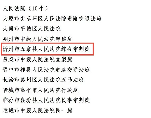 為充分發揮先進典型的示范引領作用,持續推進交通事故重傷員“預擔保、快搶救、后付費”無差別急救綠色通道機制,表揚先進、鼓舞士氣,近日,山西省道路交通事故社會救助基金管理聯席會議決定,對39個先進單位和117名先進個人予以通報表揚。其中,五寨縣人民法院綜合審判庭被評為山西省道路交通事故社會救助基金管理先進單位,忻州中院環資庭法官助理孫睿彬、忻府區法院董村法庭庭長蘇金霞被評為山西省道路交通事故社會救助基金管理先進個人。
