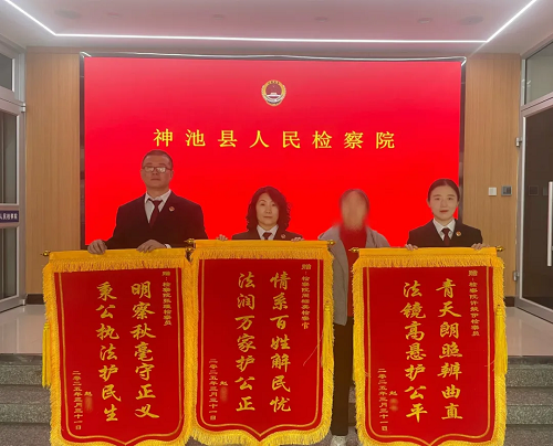 4月8日,趙女士專程到神池縣檢察院為幫助她維權的干警送來三面錦旗——“情系百姓解民憂 法潤萬家護公正”“明察秋毫守正義 秉公執法護民生”“青天朗照辨曲直 法鏡高懸護公平”。她拉著檢察干警的手,激動地說:“原來法律不是冷冰冰的條文,而是幫助我們普通人維權的武器!多謝你們對我伸出了援助之手。”
