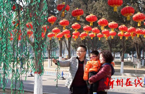 2月8日是大年初一,原平市大街小巷張燈結彩,一派喜慶,市民們正在觀賞街景歡度佳節。(趙春曉 攝)