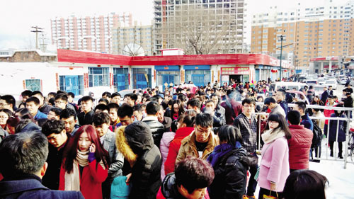 2月13日,一場大雪讓五寨縣火車站變得擁擠起來。當日是春節假日的最后一天,不少回家過年的外地工作者返程,恰巧前一天縣城迎來一場大雪,造成公路交通不便,使得更多的人選擇了乘火車返程。但臨時改變出行方式讓這些人很難買到票。(許凈 攝)