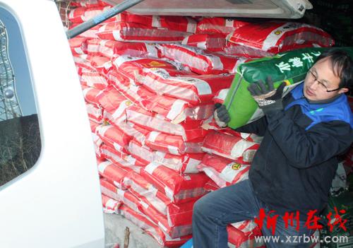 2月21日, 原平市大豐種業的人員,正在為北郭下村的農民拉用種子送貨上門服務,受到農民歡迎。目前該市 農民們已經開始購買各種、種子化肥等,為今年春耕備耕生產提前做好準備 ,打下堅實基礎。(趙月仁 攝)