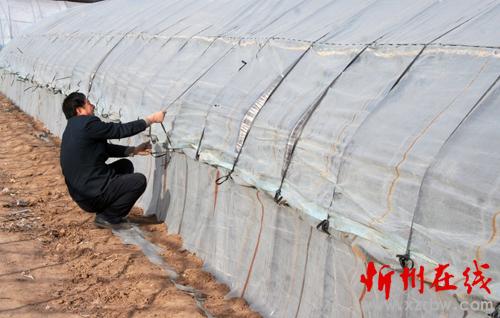 春回大地 ,萬物復(fù)蘇。2月23日,原平市田野上農(nóng)民們已開始勞作,為春播做好準備,這是正在為新建的蔬菜大棚鋪膜覆蓋,準備育苗。(趙月仁 攝)