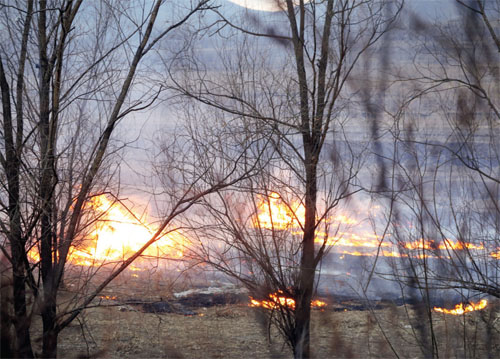 昨日(2月25日)傍晚,在忻阜高速與大運(yùn)高速互通立交橋西南方向的茫茫田野里,只見煙霧彌漫,火光沖天。火海一眼望不到邊際,升騰、翻滾的濃煙,在空中彌漫,嚴(yán)重影響司機(jī)視線,過往車輛無不小心翼翼。