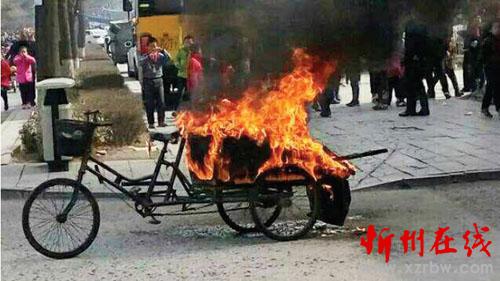3月4日上午,記者在我市城區長征街忻州六中附近看到,一輛環衛保潔車燒了起來,散發著濃濃黑煙,熊熊烈火已將環衛車燒得只剩骨架。據所屬該環衛車的環衛工人介紹,車子起火的原因是有市民將未熄滅火種的垃圾投入到車內。