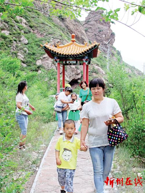 6月1日,定襄縣七巖山附近南王村幼兒園的孩子們在表演完節目后,與父母在猿頭山景點涼亭前游覽、拍照。這些孩子的父母大多外出打工,平時與孩子聚少離多,和父母一起親近大自然成了孩子們今年“六一”最大的快樂。