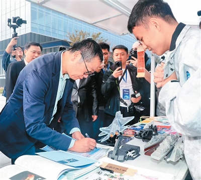 雙手捧著自己和小伙伴共同創作的科幻小說,一遍遍看著劉慈欣剛剛簽下的名字,高一學生陸逸航難掩激動。