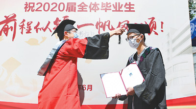 接過學位證書,本科畢業生蔡杰和院長拍了一張合影。他說:“沒有遺憾了,這個畢業典禮特殊而完美!”