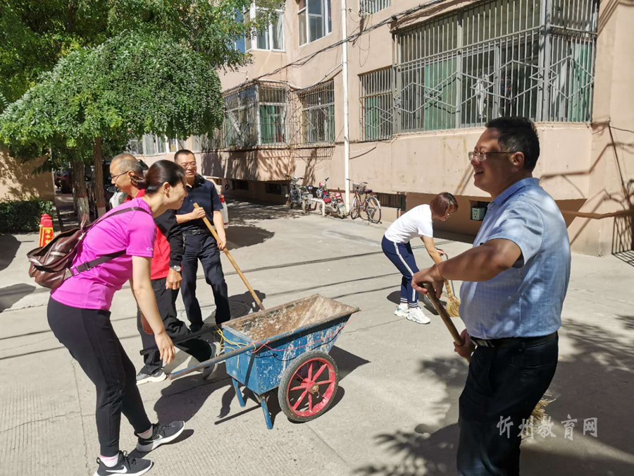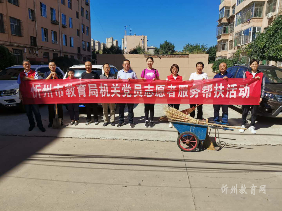 9月3日,忻州市教育機關黨員干部10余人走進云北社區教育小區開展志愿服務活動。黨員志愿者們身穿志愿者服務馬甲,佩戴黨徽,亮明身份。