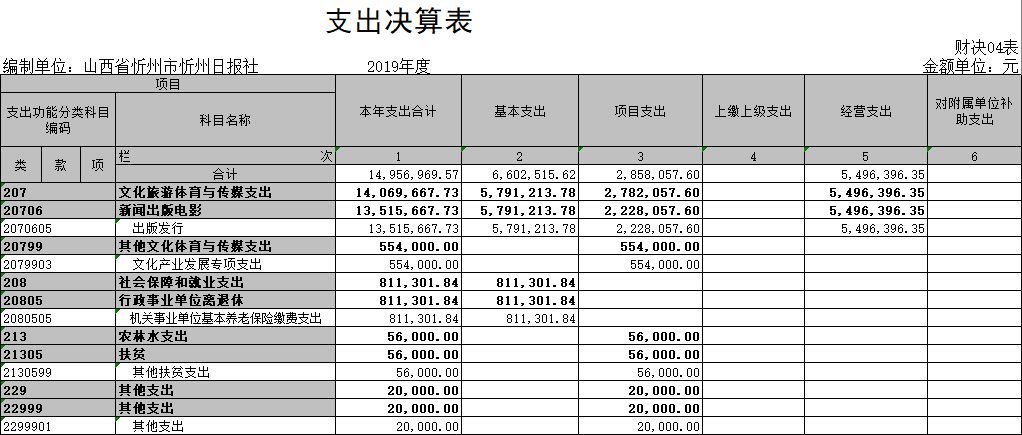 (三)部門決算單位構成:忻州日報社是一級預算單位,無下屬單位。部門預算只有一個單位,即忻州日報社。