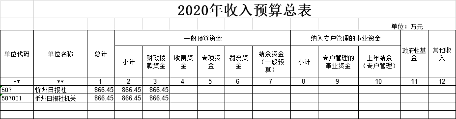 忻州日報社2020年收入預算866.45萬元,比2019年增加15.62萬元。