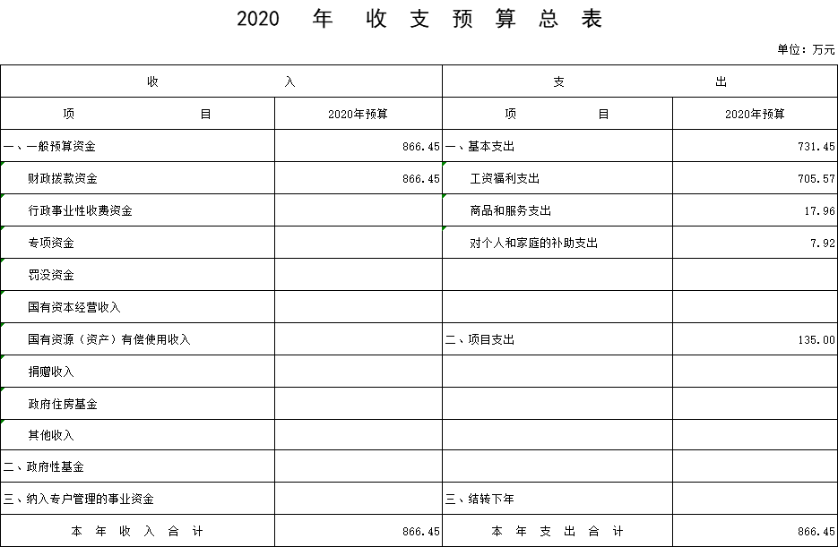 1、部門收支預算總表