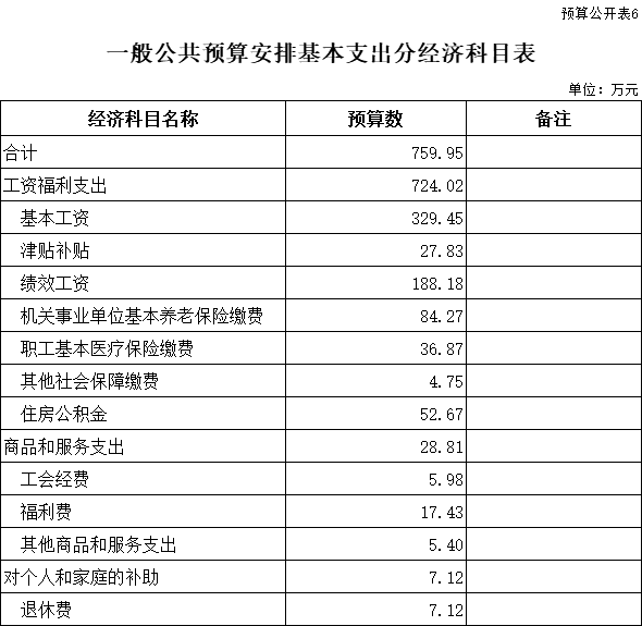 1、基本支出759.95萬元,比2020年增加28.5萬元,基本支出系按現有人員工資標準和公共經費定額標準核定,主要用于保障機關正常運轉、完成日常工作任務而發生的各項支出。其中:工資福利支出724.02萬元,對個人和家庭的補助支出7.12萬元,商品和服務支出28.81萬元。