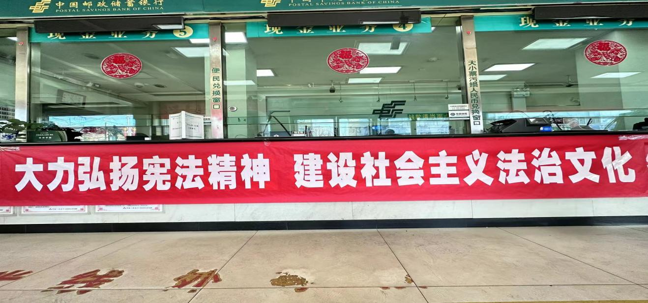 為深入貫徹黨的二十大精神,強化憲法學習宣傳,中國郵政儲蓄銀行忻州市分行圍繞“大力弘揚憲法精神,建設社會主義法治文化”主題,在轄內分支機構開展憲法宣傳活動。