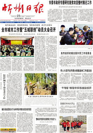4月22日,忻州市召開會議,動員全市開展“五城聯創”工作。提出了要以建設宜居忻州、造福人民群眾為目的、以“創衛”為基礎、以“創園”為重點的創建國家衛生城市、省級園林城市、國家環保模范城市、省級智慧城市、省級文明城市。同時宣布成立了“五城聯創”總指揮部,全面推進了“五城聯創”工作。9月2日和12月9日,我市相繼召開忻州城區創建國家衛生城市大會和再動員大會,對創衛工作再部署、任務再明確,進一步動員市、區各級各部門提高認識,明確責任,強化措施,狠抓落實,確保城區順利創建國家衛生城市。目前中心城區創建國家衛生城市通過專家暗訪,14個縣(市、區)實現創衛全覆蓋,全省唯一。中心城區和原平、五臺、寧武、岢嵐創建省級園林城市通過省考核驗收,數量全省第一。加強大氣污染防治,全年二級以上天氣同比增加9天,是全省完成年度目標任務的3個市之一。(2016年4月23日《忻州日報》)