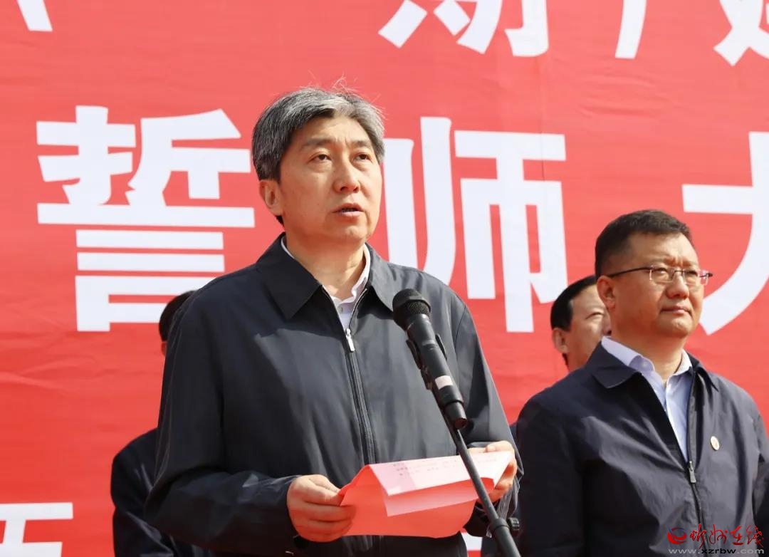 本報訊 (記者任逢春)5月11日,忻州師范學院新校區(一期)建設搬遷百日攻堅誓師大會舉行,進一步激勵全體參建人員凝心聚力,緊抓施工黃金期,大干100天,確保忻州師院新校區9月份前如期順利投入使用。市長朱曉東出席活動并提出工作要求。忻州師院黨委書記王軍致辭。市政府一級巡視員武憲堂主持誓師大會。忻州師院院長張虎芳,市政府副市長、秘書長郭寶厚等出席大會。市直相關部門負責人,山西建投、山西建工職工代表,忻州師院師生代表等參加大會。、