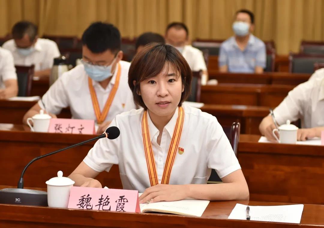 全省“兩優一先”代表魏艷霞發言。馮曉磊攝