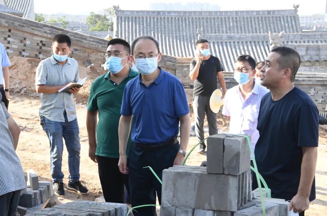忻州古城西部的西園正在如火如荼建設,部分工程已經勾勒出西園的雛形。鄭連生在現場詳細察看了西園各個園區及相關建筑的建設情況,與工程建設人員進行交流,研究解決建設中存在的問題。他要求,要嚴格按照設計圖紙進行施工建設,注重施工細節,保證工程質量,做到精益求精。要利用好原來的廢舊窯洞,將其修復,建成院落,使之成為西園的一部分。要提前考慮將來的運營工作,及早安排牌匾、對聯的制作以及景點文字說明的編寫,同步考慮園區的綠化,切實把西園打造成彰顯忻州特色的景點。