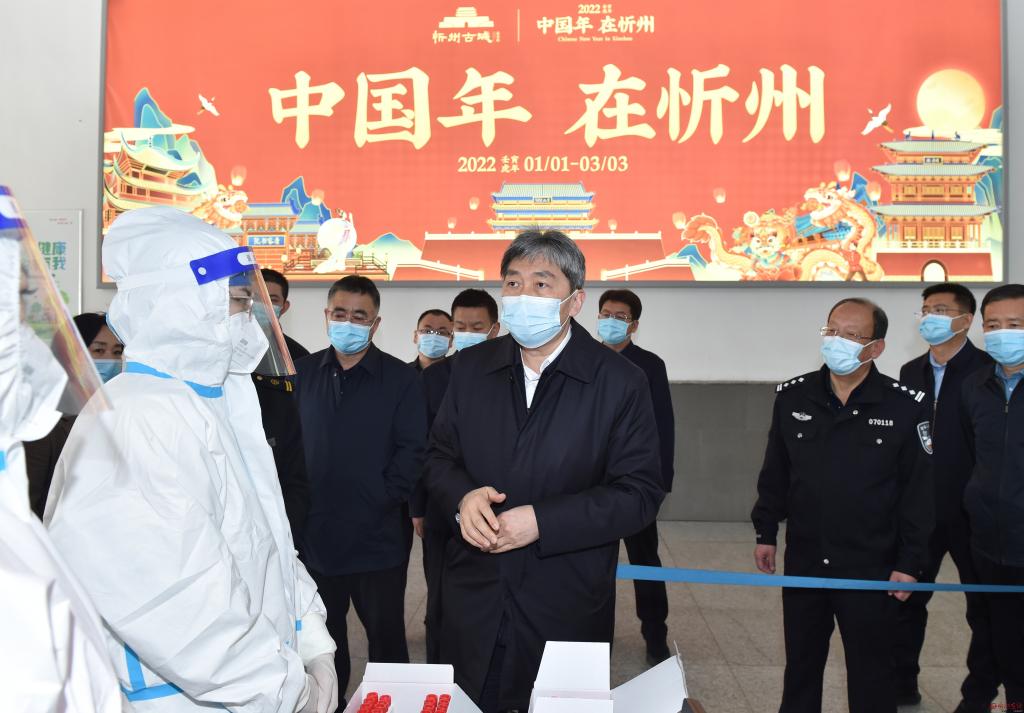 朱曉東采取“四不兩直”方式對大西高鐵忻州西站疫情防控卡口進行了檢查,與掃碼登記、體溫檢測處的工作人員以及車站負責人深入交流,詳細了解乘客出入通道設置、人員登記測溫、健康碼查驗等管理運行情況。他強調,車站作為人員密集場所,防疫工作是重中之重,要嚴把“出入關”,有序引導進出站乘客按照疫情防控規定佩戴口罩、測量體溫、出示健康碼和行程卡,做好站場消毒、人員防控、自身防護等工作,筑牢安全屏障。