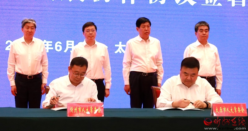 會前,太原、忻州兩市人大常委會共同簽署太忻經濟一體化發展協作協議。