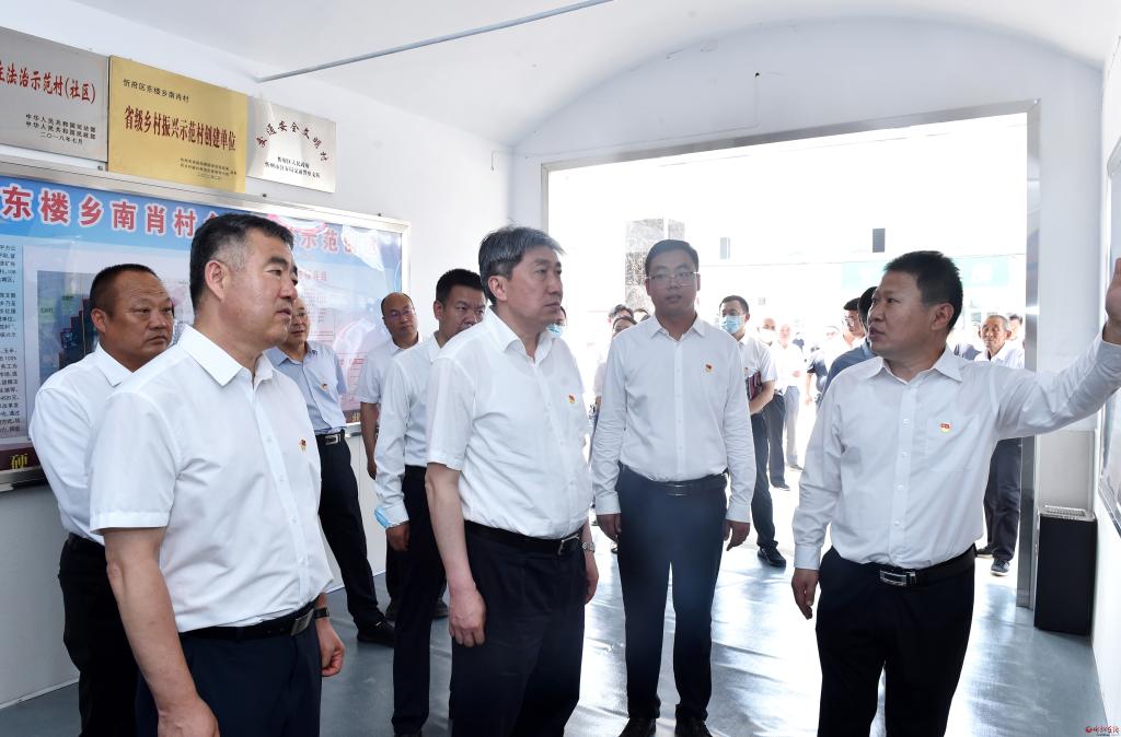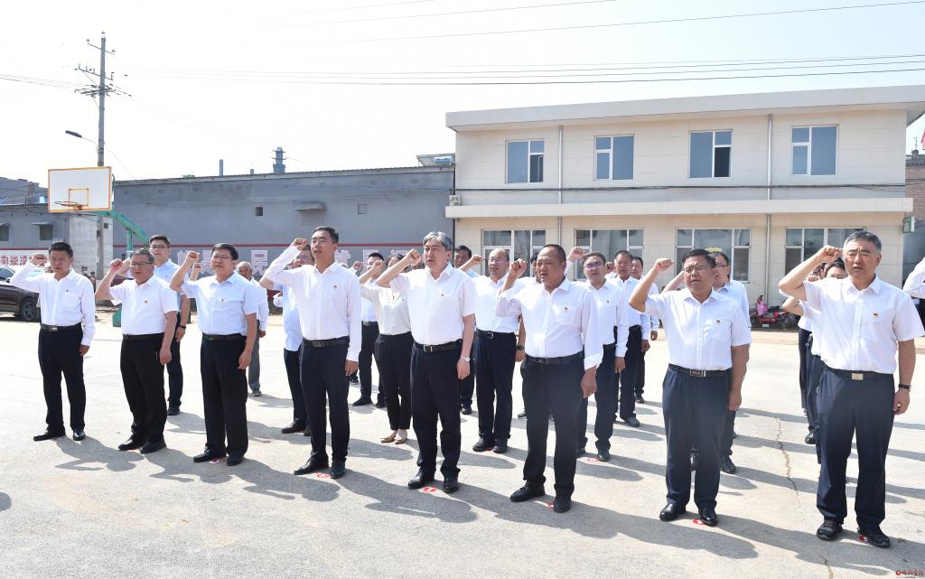 在南肖村。馮曉磊 攝 6月30日,市委書(shū)記朱曉東到忻府區(qū)東樓鄉(xiāng)南肖村參加慶祝建黨101周年活動(dòng),為基層黨員講黨課,與基層黨員重溫入黨誓詞,看望慰問(wèn)老黨員和困難黨員,并調(diào)研基層黨建、鄉(xiāng)村振興等工作。他強(qiáng)調(diào),要以習(xí)近平新時(shí)代中國(guó)特色社會(huì)主義思想為指導(dǎo),銘記奮斗歷程,深刻領(lǐng)悟共產(chǎn)黨人的初心使命,準(zhǔn)確把握忻州經(jīng)濟(jì)社會(huì)發(fā)展的階段性特征,堅(jiān)決扛牢建設(shè)太忻一體化經(jīng)濟(jì)區(qū)的歷史使命,深入實(shí)施鄉(xiāng)村振興戰(zhàn)略,推動(dòng)農(nóng)業(yè)農(nóng)村高質(zhì)量發(fā)展。市委常委、秘書(shū)長(zhǎng)、統(tǒng)戰(zhàn)部部長(zhǎng)張文偉,市政協(xié)副主席張文斌參加。 朱曉東與黨員代表重溫了建黨101年的奮斗歷史。他指出,今年是中國(guó)共產(chǎn)黨成立101周年。中國(guó)共產(chǎn)黨101年的奮斗歷史就是一部踐行初心使命的歷史,就是一部黨與人民心連心、同呼吸、共命運(yùn)的歷史。建黨百年來(lái),我們黨把為中國(guó)人民謀幸福、為中華民族謀復(fù)興確立為自己的初心使命。在新的征程上,我們必須堅(jiān)持中國(guó)共產(chǎn)黨的堅(jiān)強(qiáng)領(lǐng)導(dǎo),把初心和使命融入全面建設(shè)社會(huì)主義現(xiàn)代化國(guó)家新征程的偉大實(shí)踐中,充分發(fā)揮好中國(guó)特色社會(huì)主義制度優(yōu)勢(shì),擔(dān)負(fù)起時(shí)代賦予的偉大使命,團(tuán)結(jié)帶領(lǐng)人民群眾不斷為美好生活而奮斗。