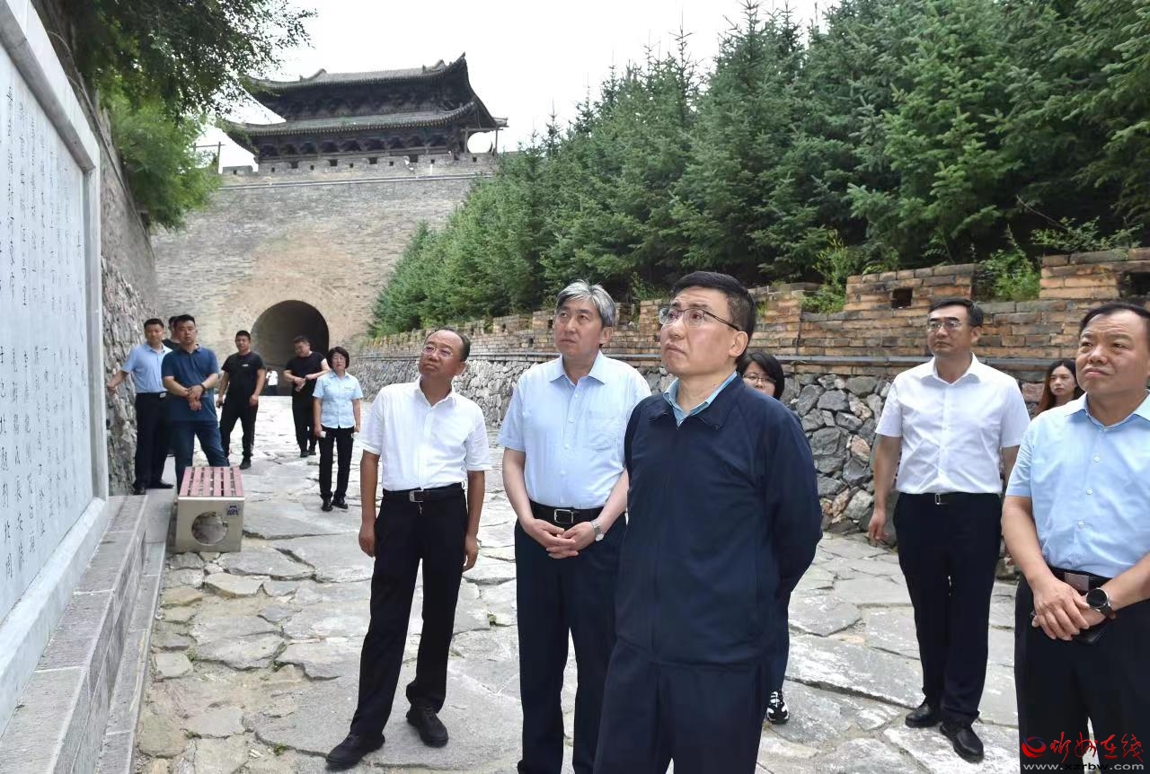 在雁關(guān)門(mén)調(diào)研長(zhǎng)城國(guó)家文化公園建設(shè)情況。馮曉磊 攝
