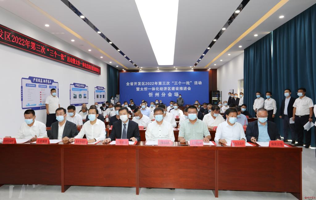 在原平經濟技術開發區雙創孵化中心,與省主會場同步,李建國主持舉行了忻州市“簽約一批”代表項目集中簽約活動。此次活動,全市開發區簽約項目37個,總投資174億元;太忻一體化經濟區忻州片區簽約項目61個,總投資613億元。忻州經濟開發區與一道新能源科技有限公司“10GW智能光伏電池生產基地項目”、原平經濟技術開發區與掌上豐(北京)科技有限公司運營中心“人工智能醫生項目”、繁峙經濟技術開發區與道威儲能技術有限公司“200MW/400MWh共享儲能電站”、定襄經濟技術開發區與杭州軍榮鴻管道配件有限公司“年產3萬噸精密鍛件智能化生產線建設項目”、岢嵐經濟技術開發區與北京夏初科技集團“鋰電池負極材料項目”、靜樂現代農業產業示范區與山西關注文化傳媒有限公司“靜樂生活中醫康養小鎮建設項目”、神池現代農業產業示范區與天牧生物科技有限公司“有機生態牧場項目”、五臺現代農業產業示范區與山西晉博優品科技推廣有限公司“網絡直播銷售基地項目”、忻府區與北京盛蓮文化旅游發展有限公司“太忻奇村國際溫泉康養旅游度假區項目”、原平市與協合能源科技有限公司“協和200MW/400MWh(一期100MW/200MWh)共享儲能項目”、定襄縣與上海恩鋼工貿有限公司“年產2萬噸鍛件法蘭生產線項目”、五臺縣與南京云海特種金屬有限公司“年產10萬噸高性能鎂基輕合金及深加工項目”、代縣與國興絲路(北京)農業科技有限公司“10萬KL高端有機黃酒產業園建設項目”、代縣與山西雁磊新型材料科技有限公司“年產10萬噸石榴砂項目”、繁峙縣與大昌煤炭物流有限公司“大昌煤炭物流園智能化儲煤基地建設項目”、五臺山風景名勝區與中國鐵建昆侖投資集團有限公司“楊柏峪交通樞紐及旅游服務基地項目”等16個代表項目分兩個批次進行了簽約。