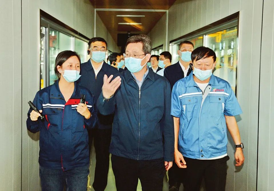 ▲9月6日,省委副書記、省長藍(lán)佛安來到位于繁峙縣的山西華茂智能新材料有限公司,調(diào)研年產(chǎn)30萬噸球墨鑄管和13萬噸鑄件項目,認(rèn)真察看生產(chǎn)設(shè)施及流程,了解產(chǎn)品類型、應(yīng)用領(lǐng)域等情況。山西日報記者 李兆民 攝