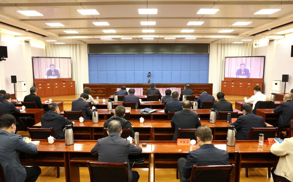 會議會場。范濤 攝 11月8日,全省文物工作會議以視頻形式召開,深入學習貫徹黨的二十大精神,貫徹落實習近平總書記關于文物工作的重要論述和考察調研山西重要指示精神,按照全國文物工作會議要求,就新時代全省文物事業高質量發展進行部署。市委副書記、市長李建國,市政府秘書長張艮生和市直相關部門負責人在忻州分會場參加會議。