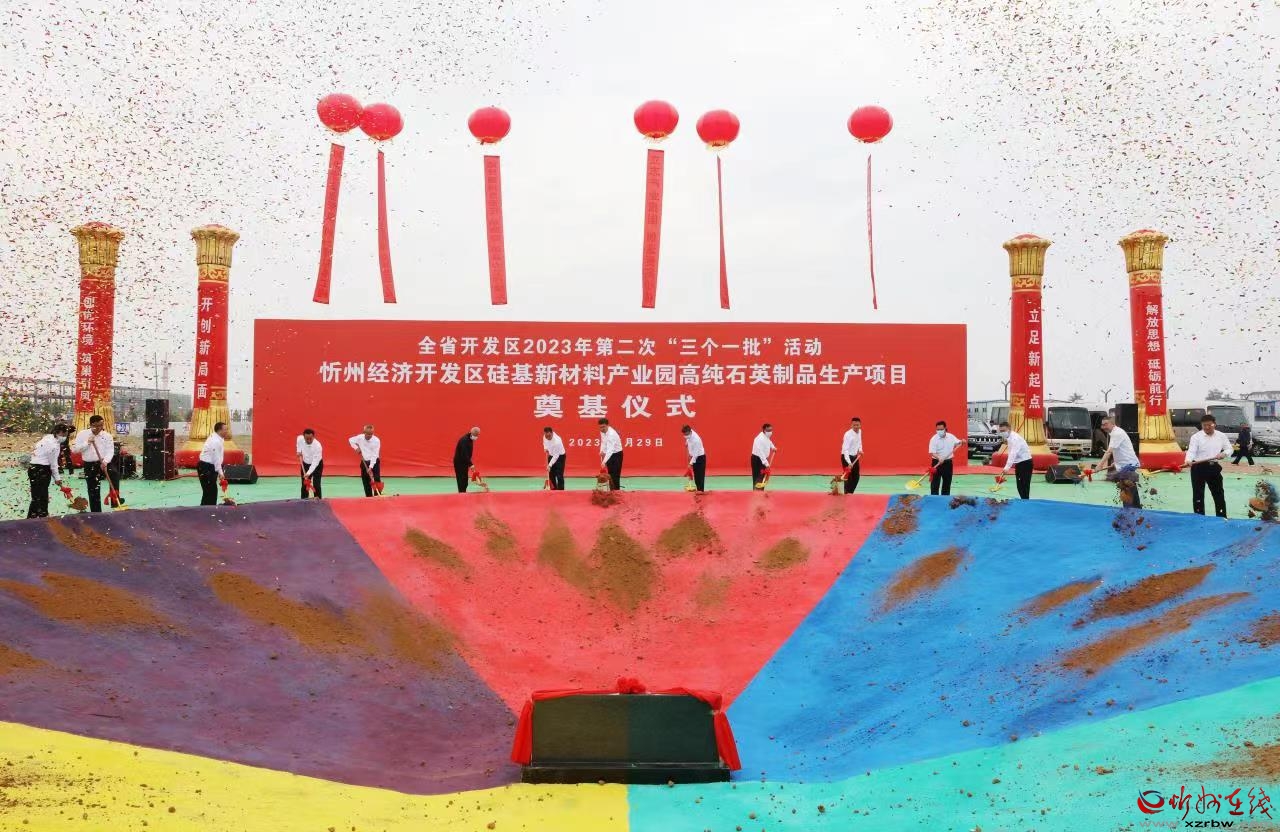 與省主會場同步,李建國主持舉行了忻州市“簽約一批”代表項目集中簽約活動。忻州經濟開發區特種硅基新材料智能生產項目、原平經濟技術開發區污廢水處理環保成套設備及配套產品生產項目、繁峙經濟技術開發區15萬千瓦光伏發電項目、定襄經濟技術開發區無憂(山西)數字金融產業園項目、岢嵐經濟技術開發區宇航固體動力岢嵐試驗中心項目、靜樂現代農業產業示范區羊肚菌研發種植推廣實驗基地建設項目、神池現代農業產業示范區太平莊生態養殖示范基地建設項目、五臺現代農業產業示范區植物蛋白飲品及休閑食品生產項目、五寨現代農業產業示范區大辛莊繁育場項目、偏關生態文化旅游示范區生態農業建設項目等10個代表項目分兩批進行現場簽約。簽約儀式結束后,與會人員赴“開工一批”代表項目——“硅基新材料產業園高純石英制品生產建設項目”現場培土奠基。隨后赴重點建設項目——“10GW智能光伏電池生產基地項目”實地觀摩,該項目聚焦“奮戰7.30、8.30、9.28”目標,分階段確保項目竣工投產。