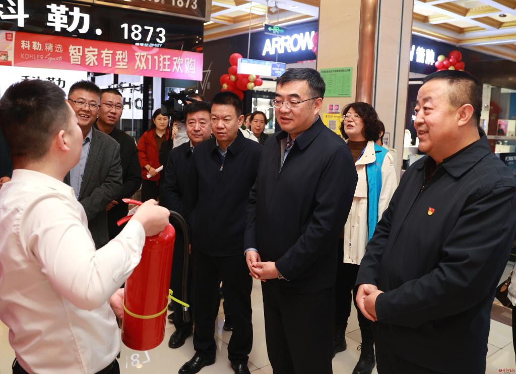 在東方家園調(diào)研期間,李建國隨機走訪商戶,抽查消防卷閘升降運行、滅火器材使用、消防應(yīng)急處置等知識的普及情況。他強調(diào),各級各類經(jīng)營主體特別是人員匯集的大型商貿(mào)場所,要不折不扣全面落實消防安全主體責(zé)任,狠抓隱患排查治理,加強員工消防安全教育和培訓(xùn),完善應(yīng)急處置措施,提升火災(zāi)風(fēng)險防范化解能力,確保消防安全。