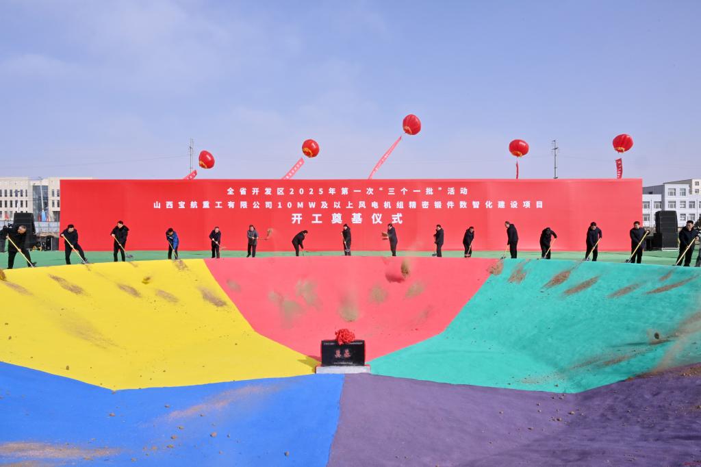全省開發區2025年第一次“三個一批”活動山西寶航重工有限公司10MW及以上風電機組精密鍛件數智化建設項目開工奠基儀式現場。馮曉磊 攝