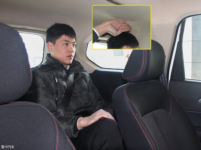 模特身高183cm,坐進駕駛位,將座椅位置調至最低,頭部還有一拳左右的余量。
