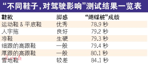 為讓測試更加接近于真相,此次測試專門請來一位女士參與。她穿上不同的鞋子駕駛同樣一輛汽車。測試項目分兩種,一是直觀感受,駕駛員描述不同鞋子對駕駛習慣的影響;二是讓數據說話,穿上不同的鞋子挑戰經典的場地測試項目“蝴蝶樁”,看所耗時間的多與少。