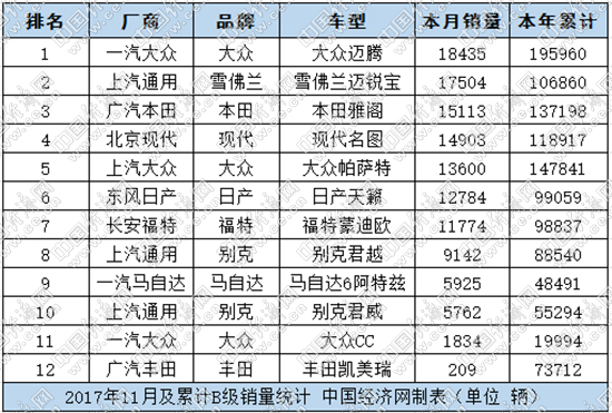 11月,合資B級車市場中,共有7款車型銷量過萬,除了上面提到的邁騰、帕薩特和雅閣之外,還有天籟、蒙迪歐、名圖和邁銳寶。回頭來看,合資B級車市場在下半年走出一股“上揚波浪”,最近3個月,保持了6款以上車型銷量過萬的成績,這一現象在往年很難看到。