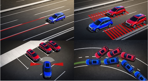 AI安全衛士系統配置2個前雷達,3個倒車雷達,4個高清攝像頭,、360°隨動全景影像。